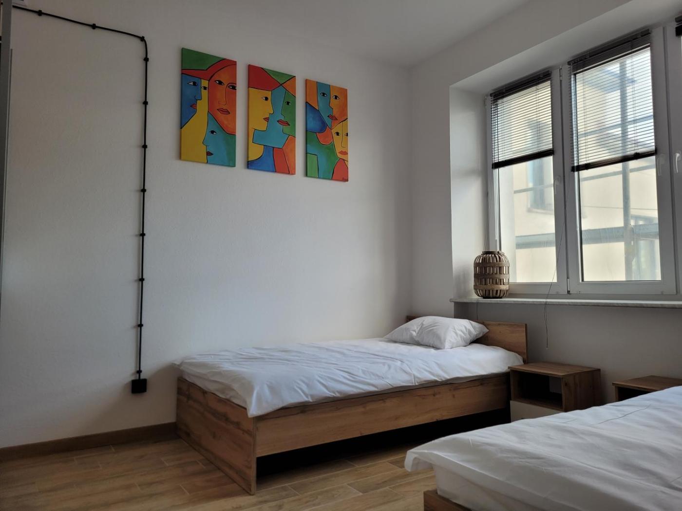Apartament z 2 sypialniami. This apartment comes with 2 bedrooms, a kitchen and 1 bathroom with a shower. In the fully equipped kitchen, guests will find a stovetop, a refrigerator, a microwave and an electric kettle. The apartment features a washing machine and heating. The unit has 3 beds. Apartament - 3 osobowy. Powierzchnia pokoju ok.: 41 mkw.